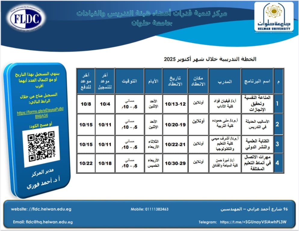الخـطـة التدريبية الخـطـة التدريبية خلال شهر أكتوبر 2025 ـــــــــــــــــــــــــــــــــــــــــــــــــــــــــــــــــــــــــ للتسجيل فى الدورات التدريبية استمارة التسجيل